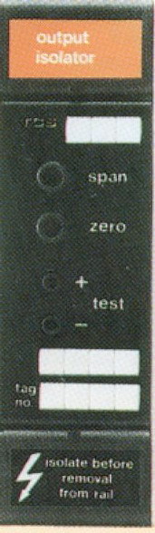 These units provide a similar function to the input isolators but may be used to isolate and convert outputs to the field. This maintains the convention of field terminations at the foot of the box and system terminations at the top. Upscale or downscale break protection is also an option. The unit can be supplied from either 24Vac or dc supply.